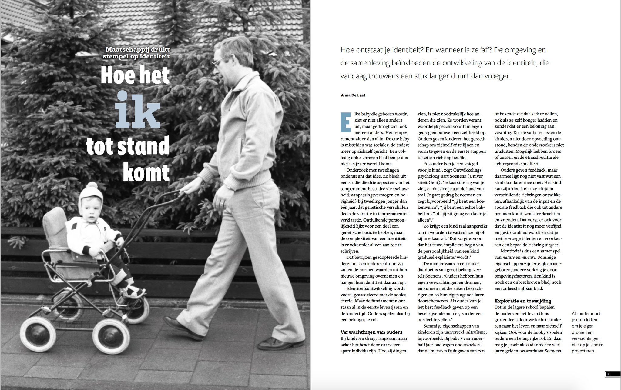 Wie ben ik? En wie wil ik zijn? In deze speciale editie lees je alles wat je wil weten over identiteit en persoonlijkheid. Hoe ontstaat de persoonlijkheid, in hoeverre bepalen je werk of je uiterlijk je identiteit, wat zijn de beste persoonlijkheidstrekken om gelukkig te worden? En in hoeverre versterkt een aangewakkerd identiteitsgevoel het wij-zij-denken in de maatschappij?